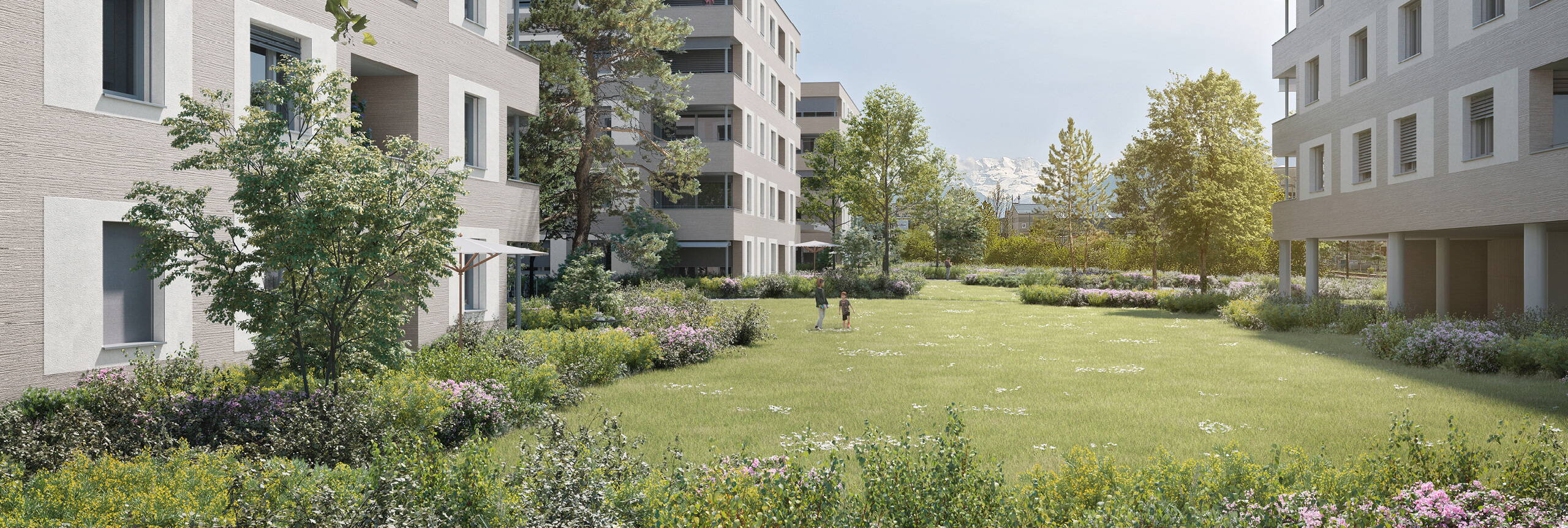 Das lebendige und dennoch ruhige Quartier vermittelt ein familiäres Wohngefühl und bietet Raum für Rückzugsmöglichkeiten. Grosszügige Spielflächen und die grüne, sorgfältig gestaltete Umgebung schaffen ein harmonisches Umfeld.
